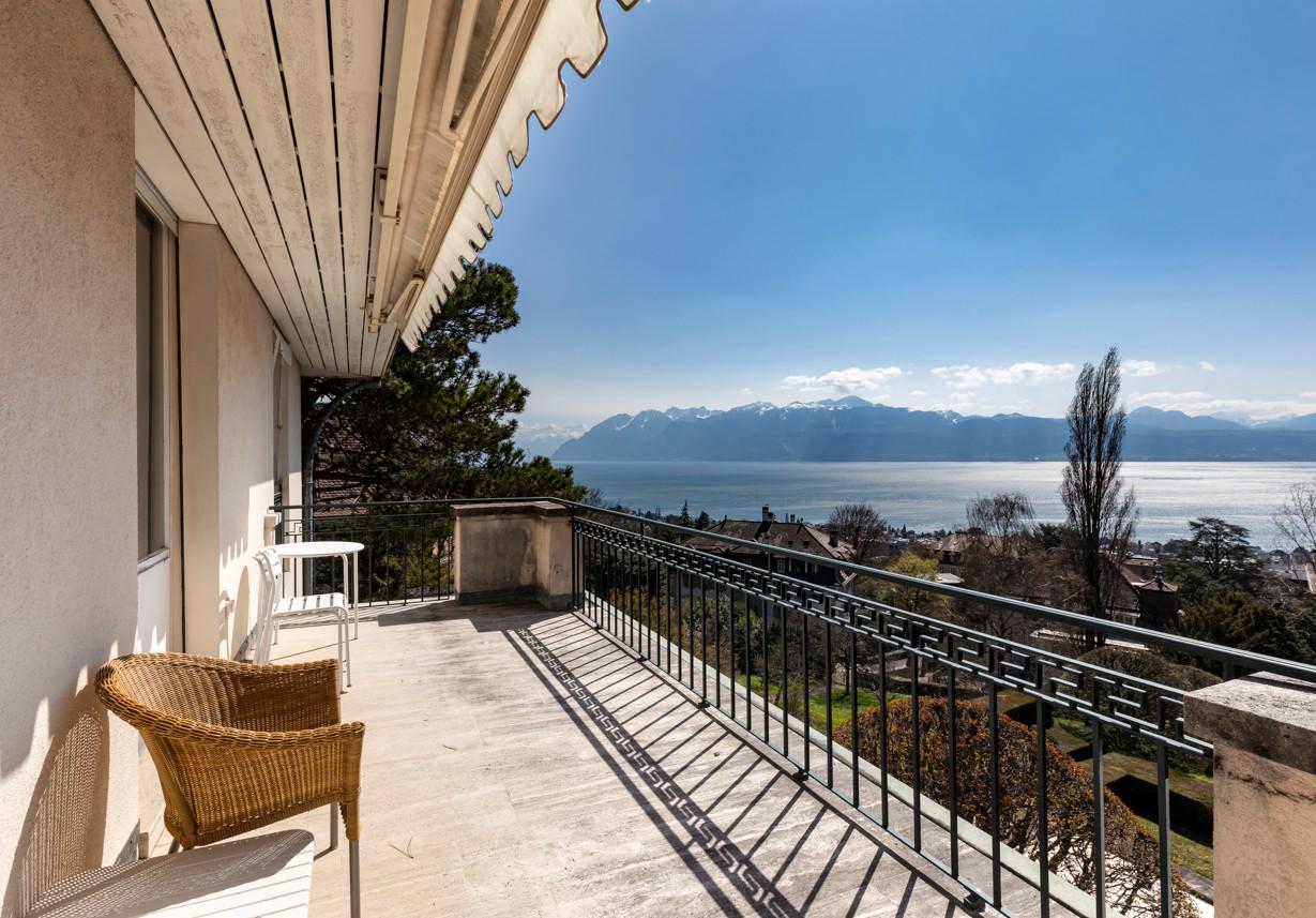 Nichée sur une parcelle paysagée de près de 2’500 m², cette propriété d’exception profite d’un calme absolu et d’une vue panoramique imprenable sur le lac Léman.