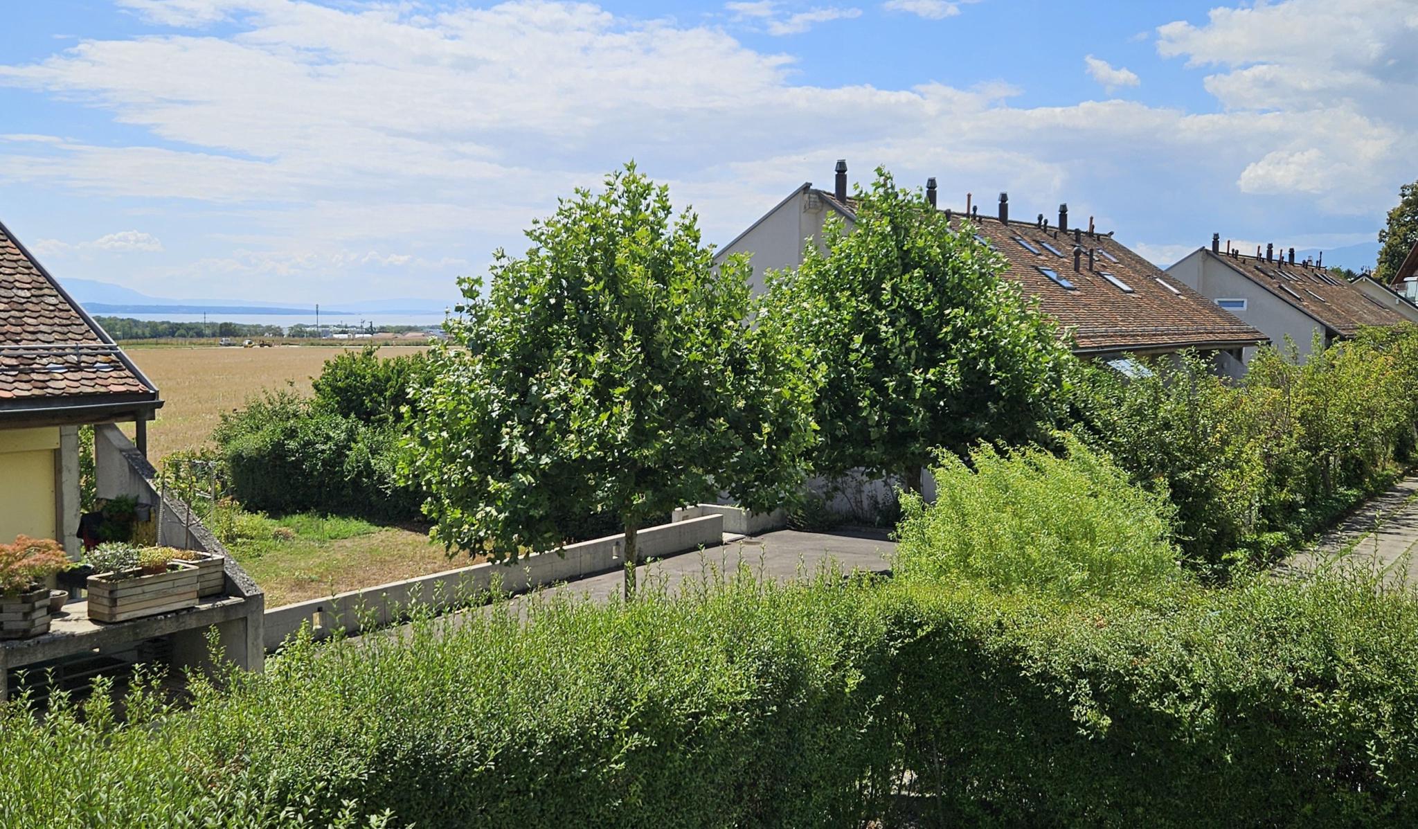 A proximité du coeur du village d'Etoy, avec toutes les commodités, écoles, commerces, restaurant, transports (bus), situé au 1er étage d'une petite PPE de 11 appartements contruite en 2011 avec ascenseur, bel appartement de 3,5 pces (90 m2) en duplex, orienté plein sud.