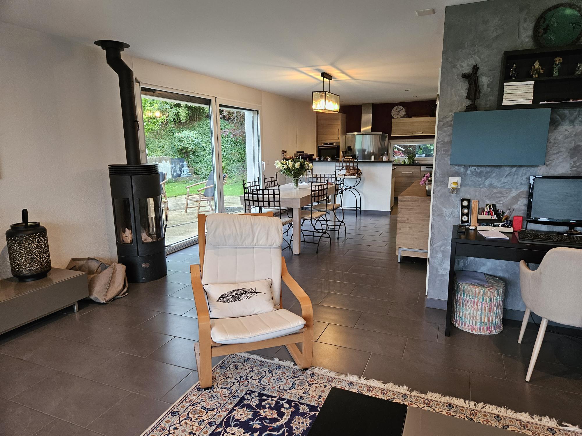 En bordure du village de Penthaz, charmante villa mitoyenne en PPE construite en 2010, implantée sur une belle parcelle de 432 m2 arborisée.