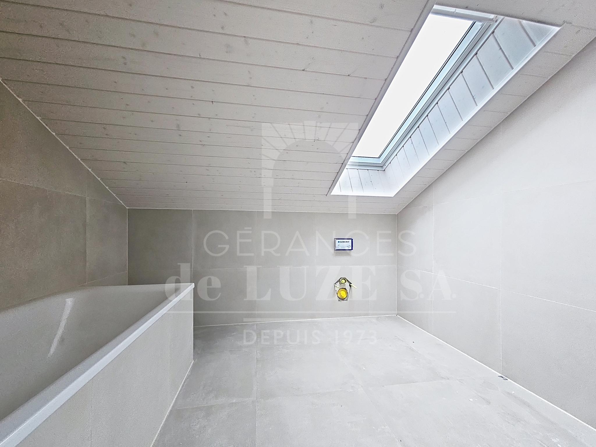 - Au rez-de-chaussée, il comprend une entrée indépendante, un local technique (assez grand pour permettre aussi un petit espace de stockage) ainsi qu’une buanderie individuelle, ainsi qu' un garage (porte automatique; pas de borne de recharge mais évolution possible à l'avenir) avec accès direct par l'intérieur.