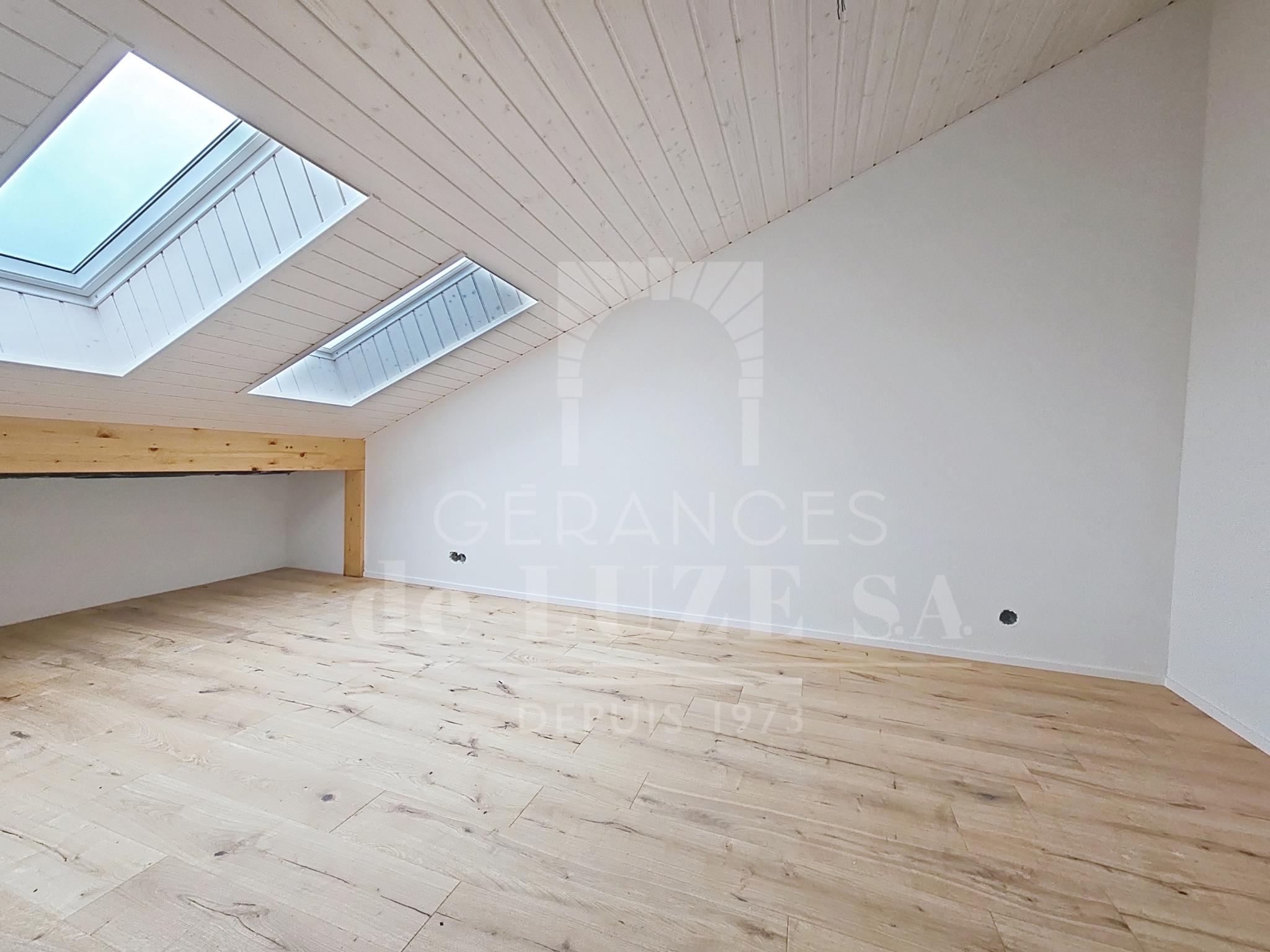 - Le deuxième étage propose deux chambres à coucher mansardées mais spacieuses et agréables, ainsi qu’une seconde salle de bain/WC.